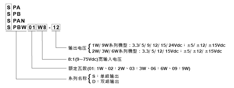 SPA / DPA / SPB / DPB W8系列:1W~9W SIP 單排引腳超寬壓 8:1 輸入穩壓隔離 DC-DC 轉換器