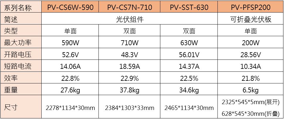 PV-CS/SST/PFSP系列: 光伏組件及可折疊光伏板
