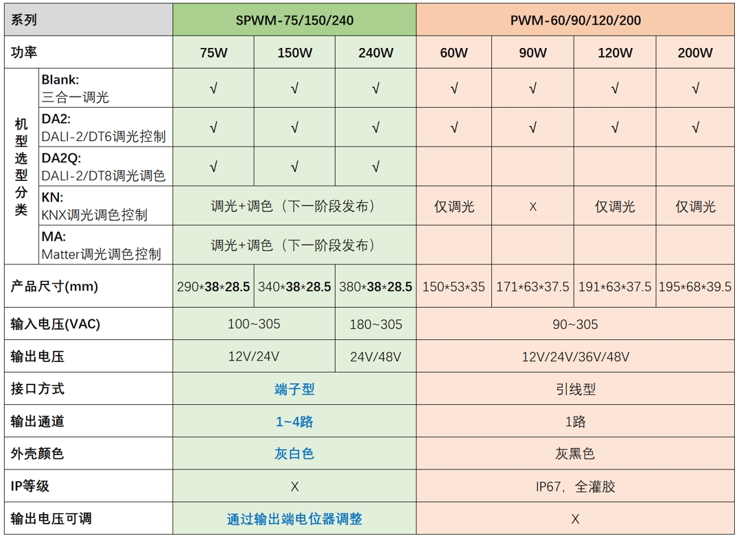 明緯深耕 LED 照明驅動與應用領域多年,自推出PWM系列恒壓調光LED驅動電源后,獲得良好的市場反響,現接續推出SPWM系列恒壓調光/調色的機型,與原有的PWM系列構成互補關系,進一步豐富恒壓調光/調色的LED驅動電源產品線。