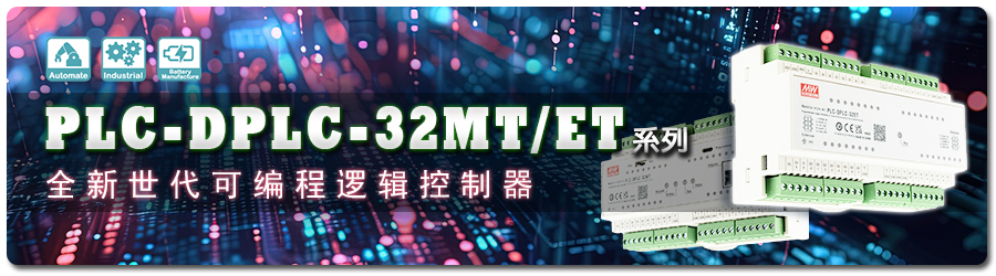 明緯開發(fā)的可編程邏輯控制器— PLC-DPLC-32MT/ET系列,軟韌體設計符合國際標準IEC61131-3。該系列采用Open PLC Editor編程軟件,支持5種編程語言,有多元庫函數可調用,并支持在線調試。此外,其支援MODBus通訊界面,可遠程監(jiān)控現場設備運行與對接其他通訊設備;采模組化設計,MT/ET系列支持輸入16點/輸出16點,支持豐富的/IO口擴展,最多可擴展7臺,輸入輸出最大256點。PLC-DPLC系列具備4組同時輸出最高100KHz脈沖,內置時鐘功能可執(zhí)行時間控制。適用于工業(yè)自動化、SMT產線自動化、智慧農業(yè)、電梯控制、樓宇自動化控制…等應用場景。