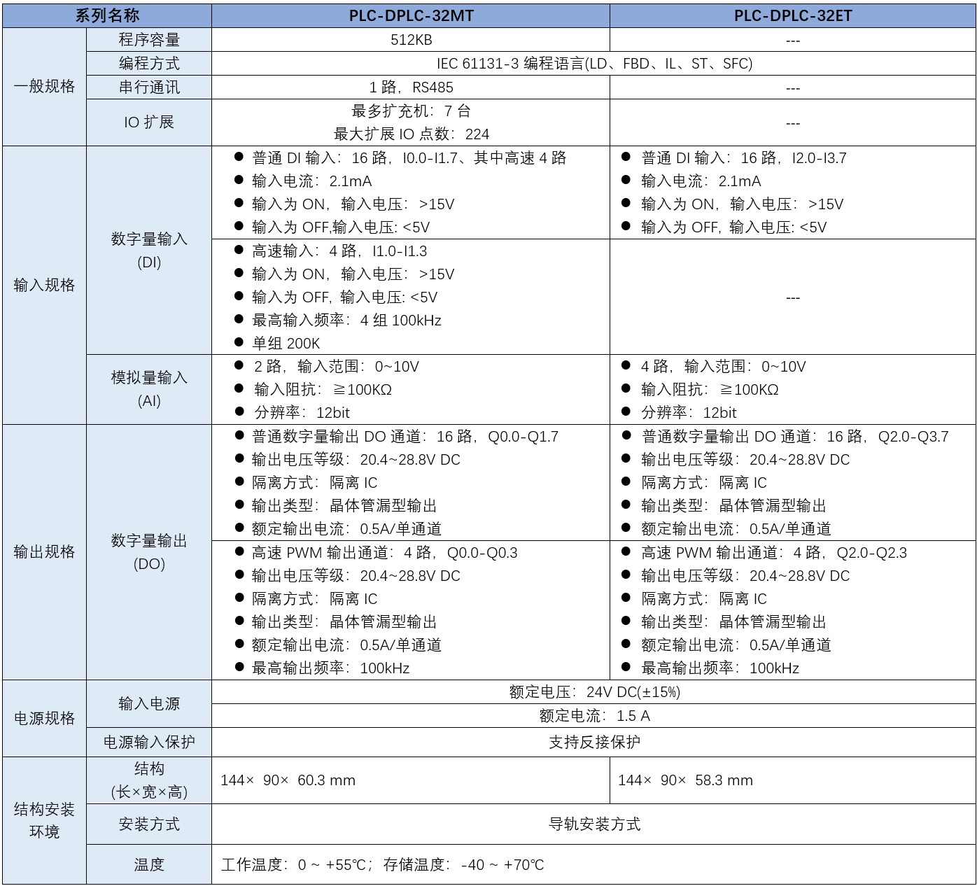 PLC-DPLC-32MT/ET系列: 全新世代可編程邏輯控制器