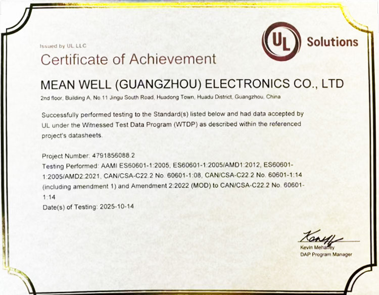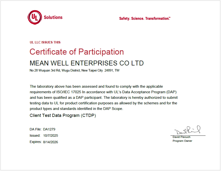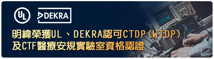 明緯榮獲 UL、DEKRA 認可 CTDP(WTDP) 及CTF 醫療安規實驗室資格認證,持續提升全球認證核心競爭力
