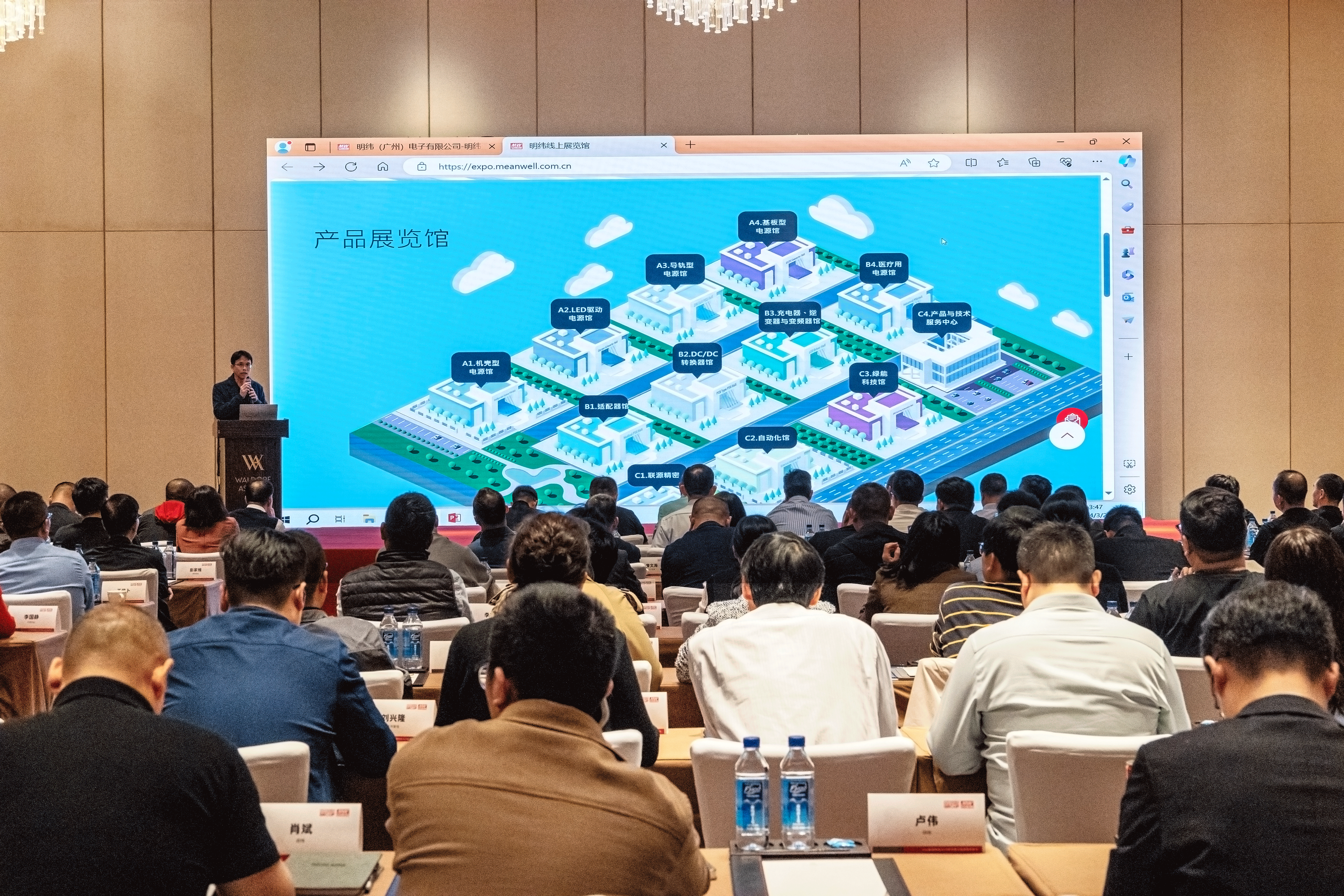 產品經理向伙伴介紹線上展覽館的應用 明緯向伙伴介紹產品應用領域及發展方向
